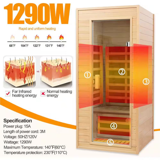 Moray 1-Person Indoor Hemlock Infrared Sauna with 5 Far-Infrared Carbon Crystal Heaters